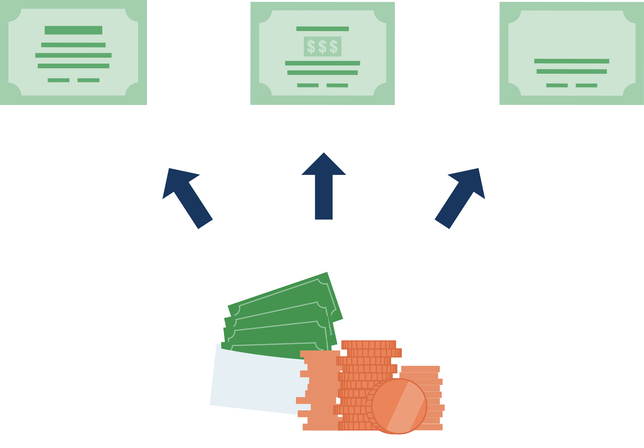 Når du spreder dine investeringer på de tre måder, opnår du et højere forventet afkast, end hvis du vælger investering i en enkelt obligation eller aktie med samme risikoniveau.