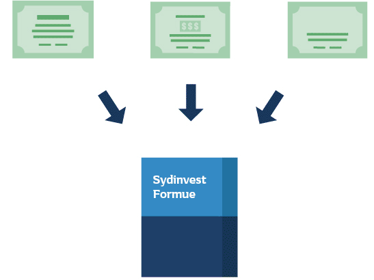 Sydinvest Formue er fonde, som ikke udelukkende investerer i én aktivklasse som fx aktier eller obligationer. Hos Sydinvest findes ni forskellige Formue-fonde baseret på fem forskellige strategier. I fondene indgår både obligationer, aktier, investeringsbeviser, ETF’er (børshandlede fonde) samt alternative investeringer som fx investeringer i ejendomme og guld.