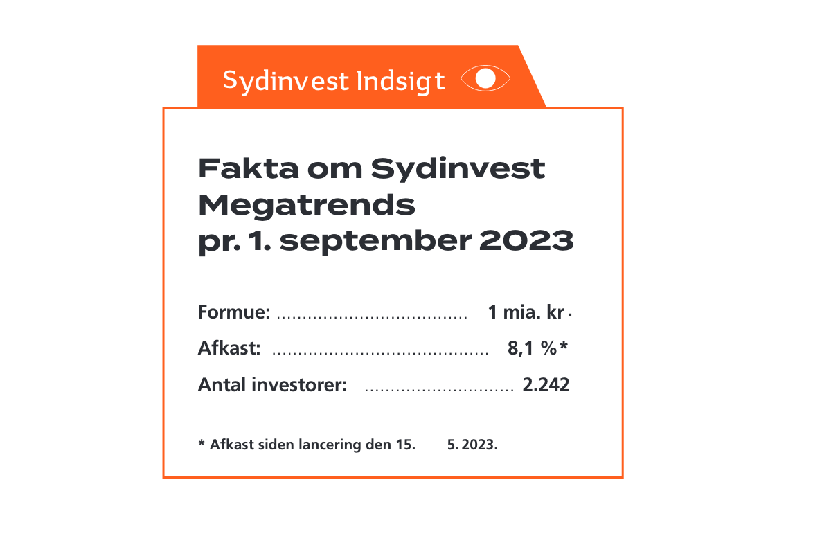 Da Sydinvest lancerede sin nyeste investeringsfond, Sydinvest Megatrends, i midten af maj 2023, var investeringsteamet bag fonden helt trygge ved, at de havde identificeret og håndplukket en række lovende investeringer inden for de fem forskellige megatrends, som fonden er specialiseret i.
