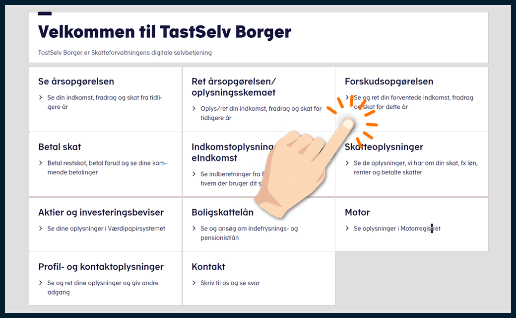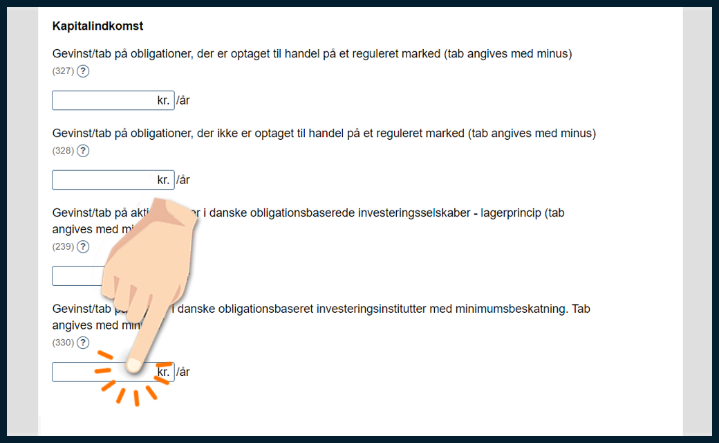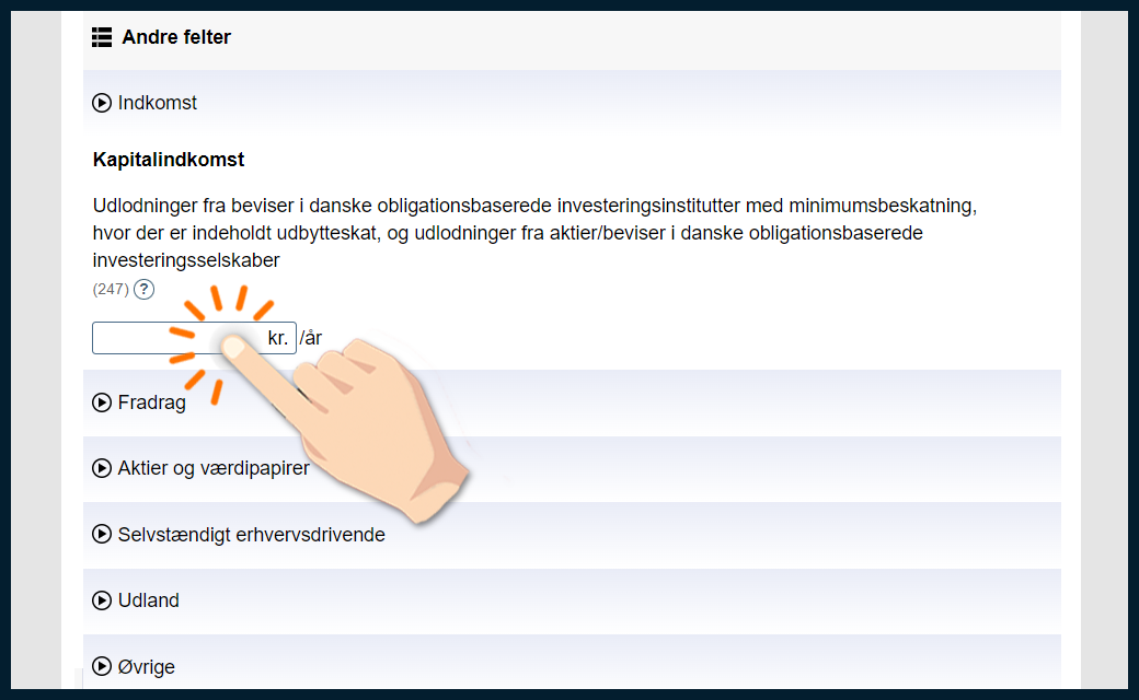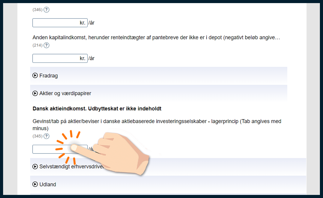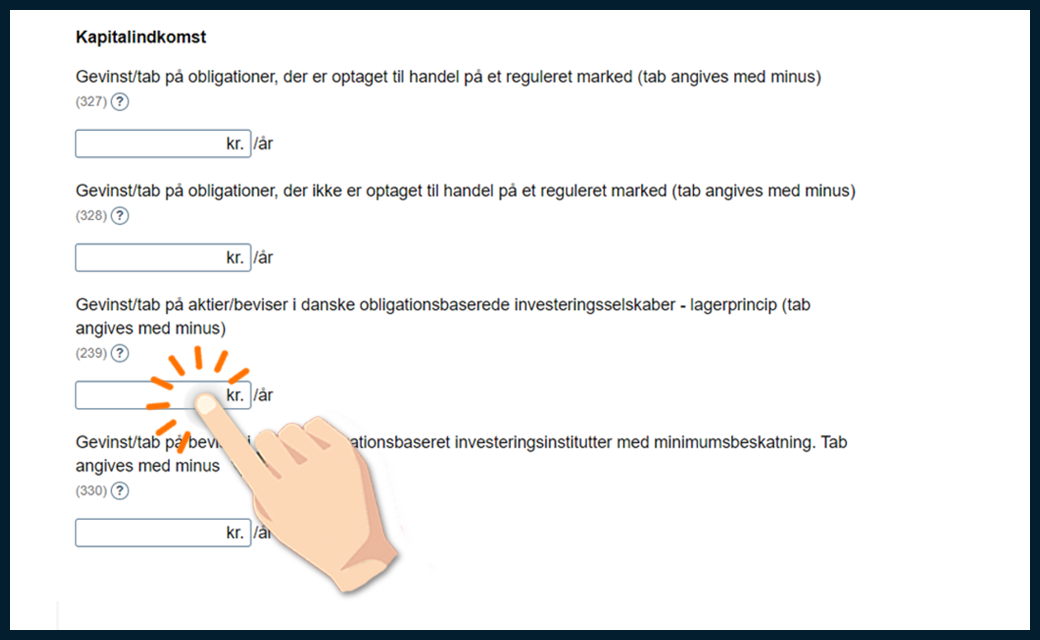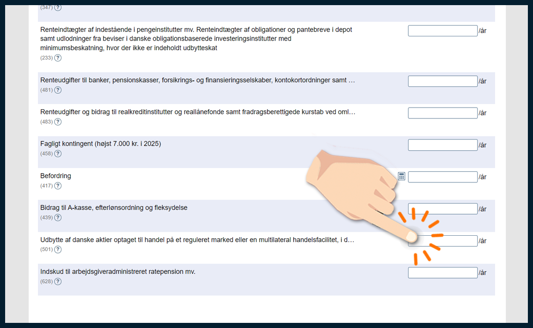 Markér de fonde, du har, og angiv, om du har solgt beviser og/eller modtaget udbytte i 2025. På de næste skridt viser vi, hvordan du udfylder din forskudsopgørelse.